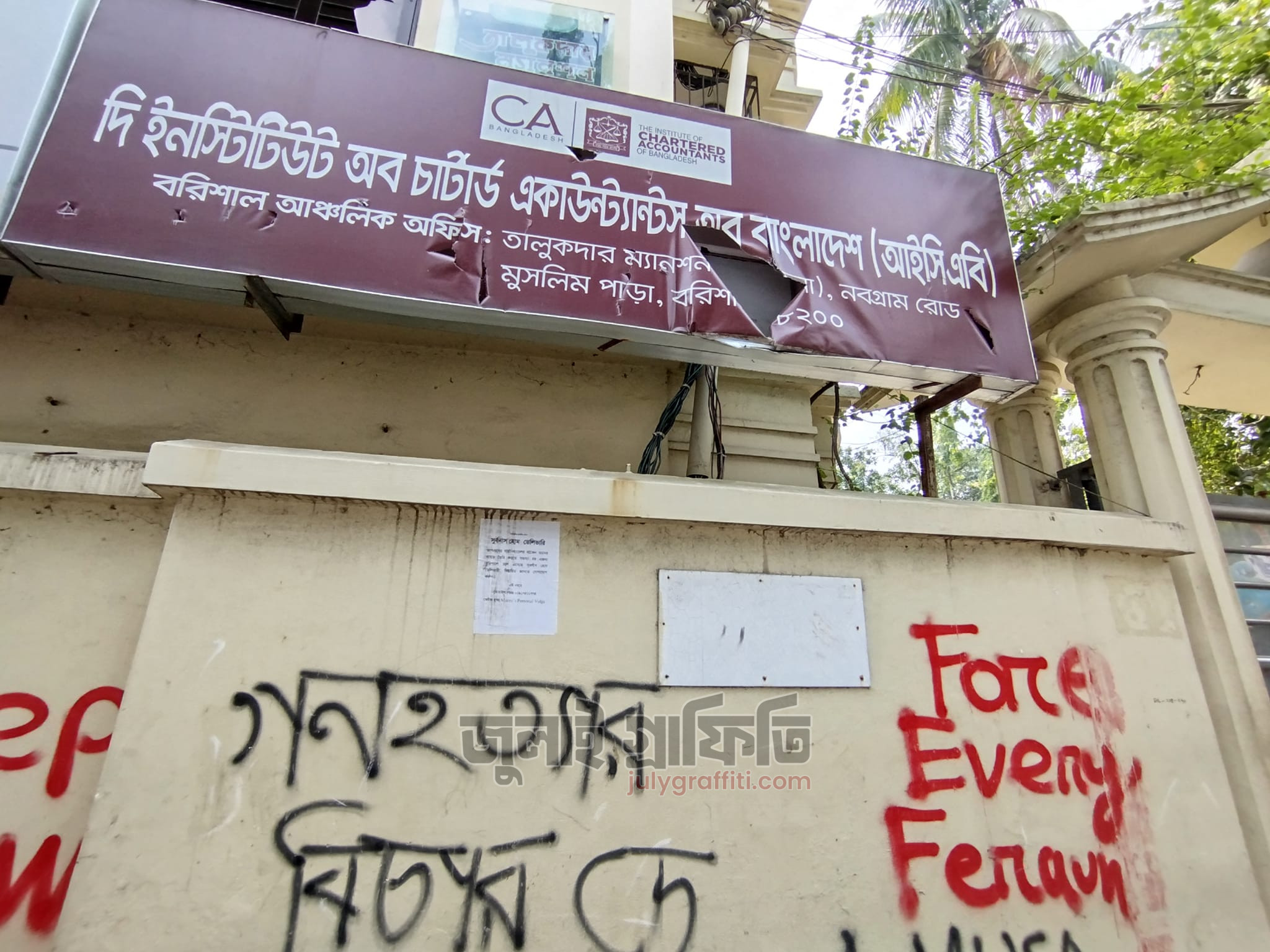 ইনস্টিটিউট অফ চার্টার্ড অ্যাকাউন্ট্যান্ট বাংলাদেশ, বরিশাল ( এর ছাদ থেকে গুলি চালানো হয়) তারিখ: ৩০ সেপ্টেম্বর, ২০২৪ ছবি: সিলমী সাদিয়া