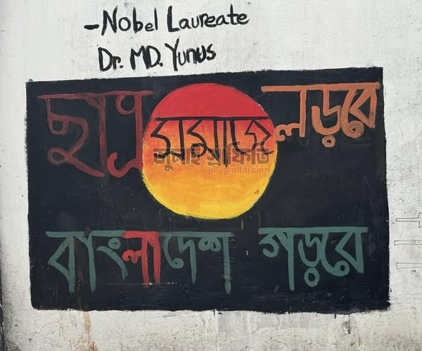 কাকরাইলের বিপ্লবীরা লিখেছে, ছাত্রসমাজ লড়বে, বাংলাদেশ গড়বে। ছবি: ইয়াসির আরাফাত