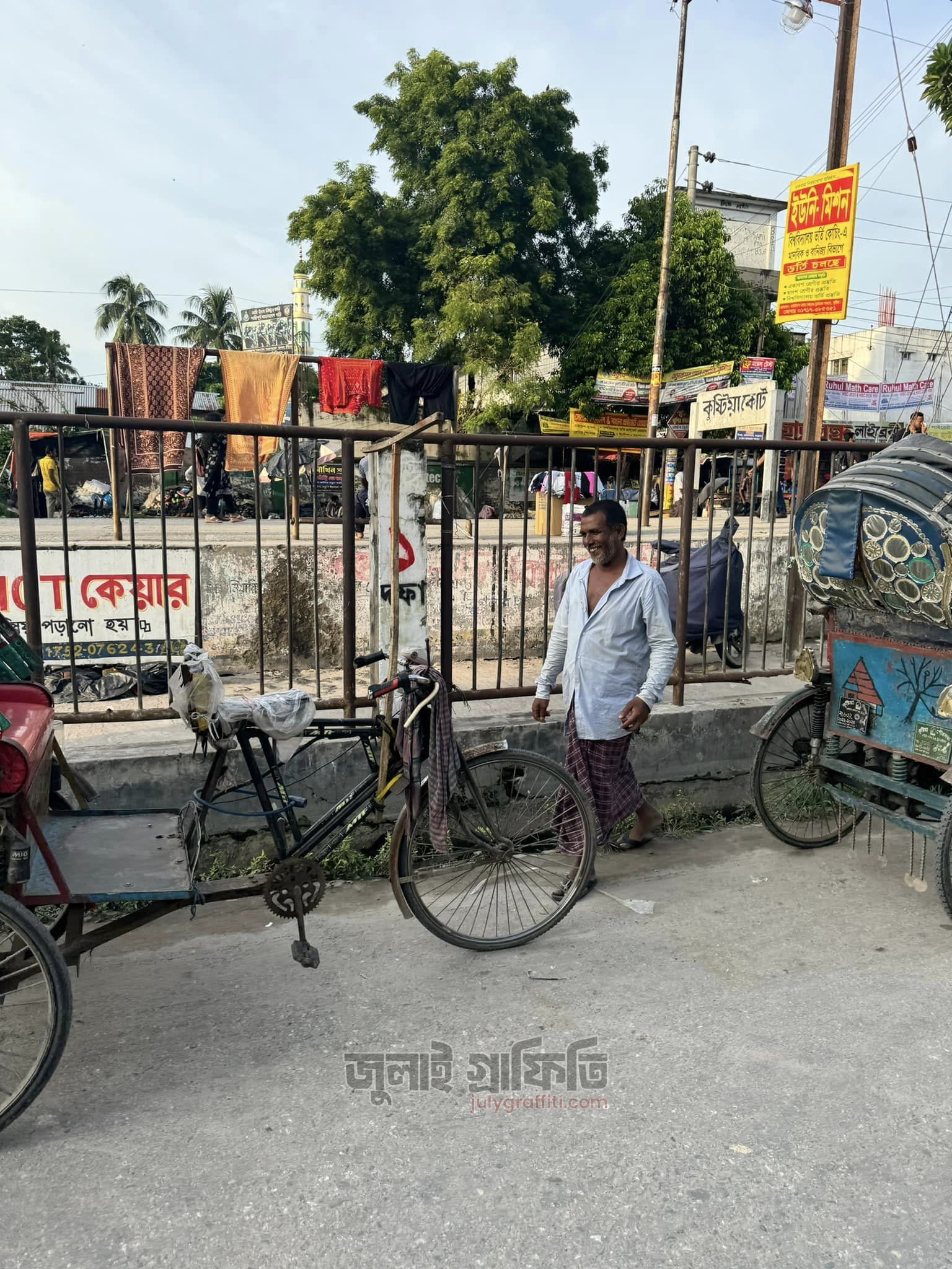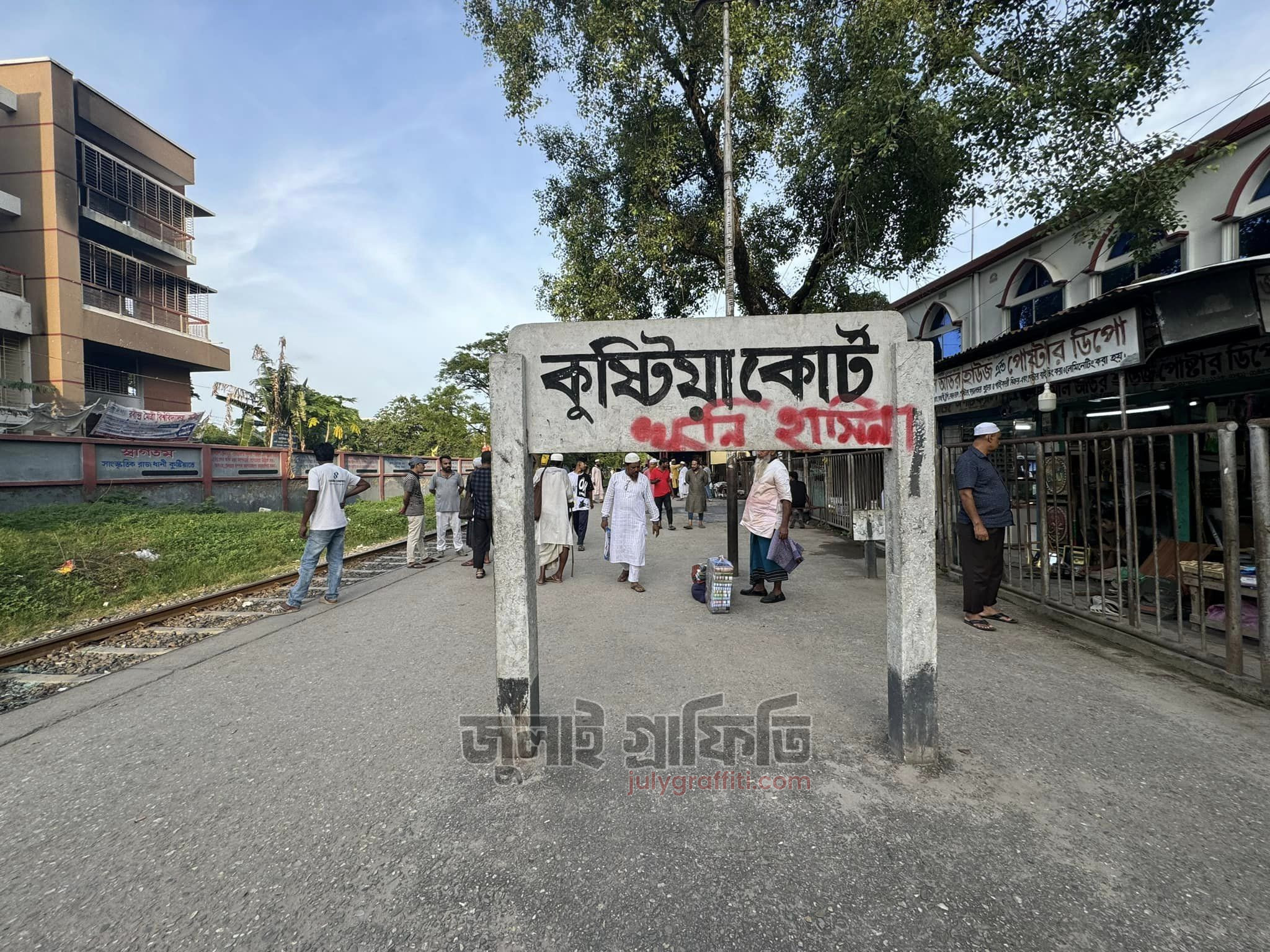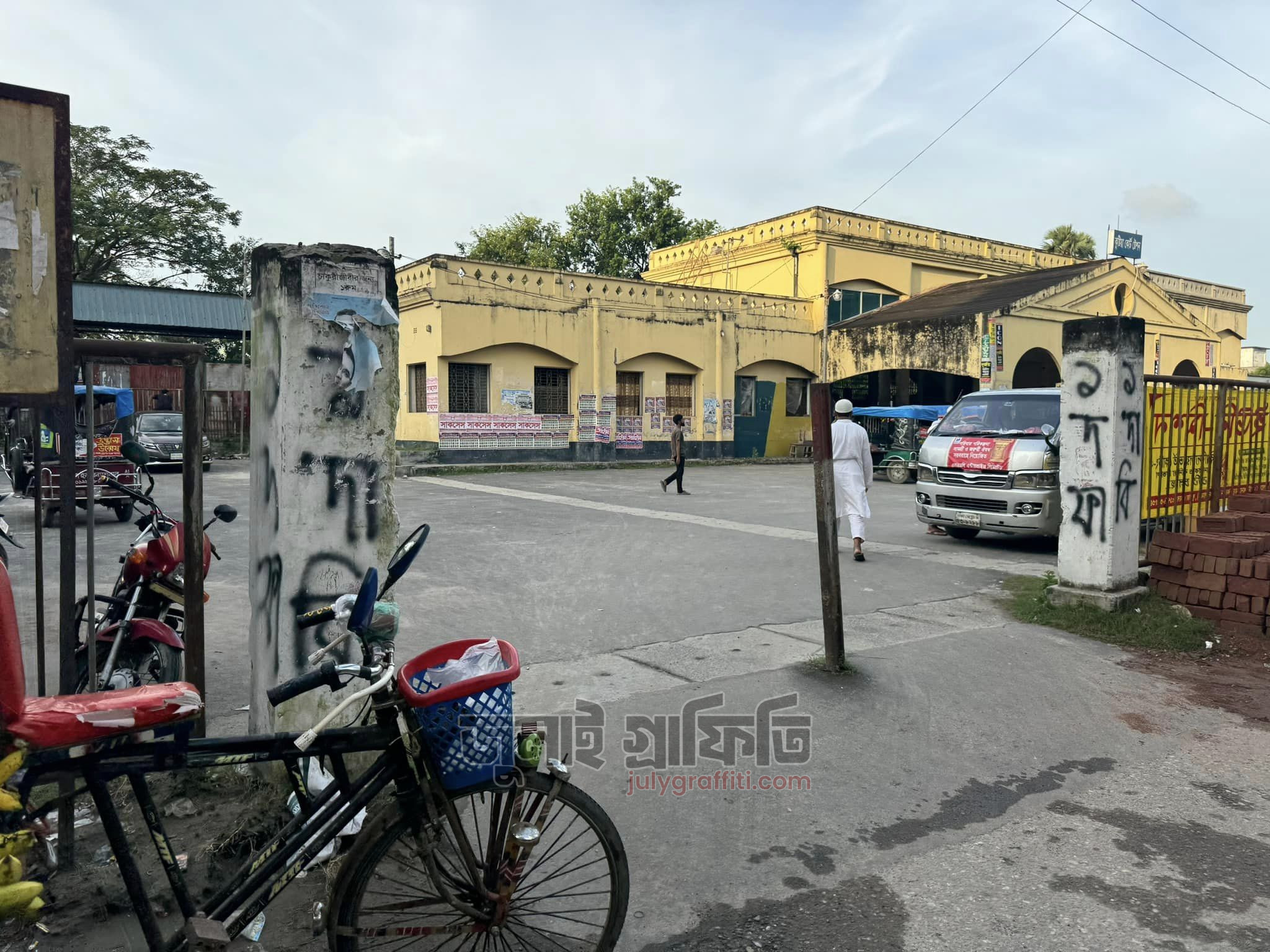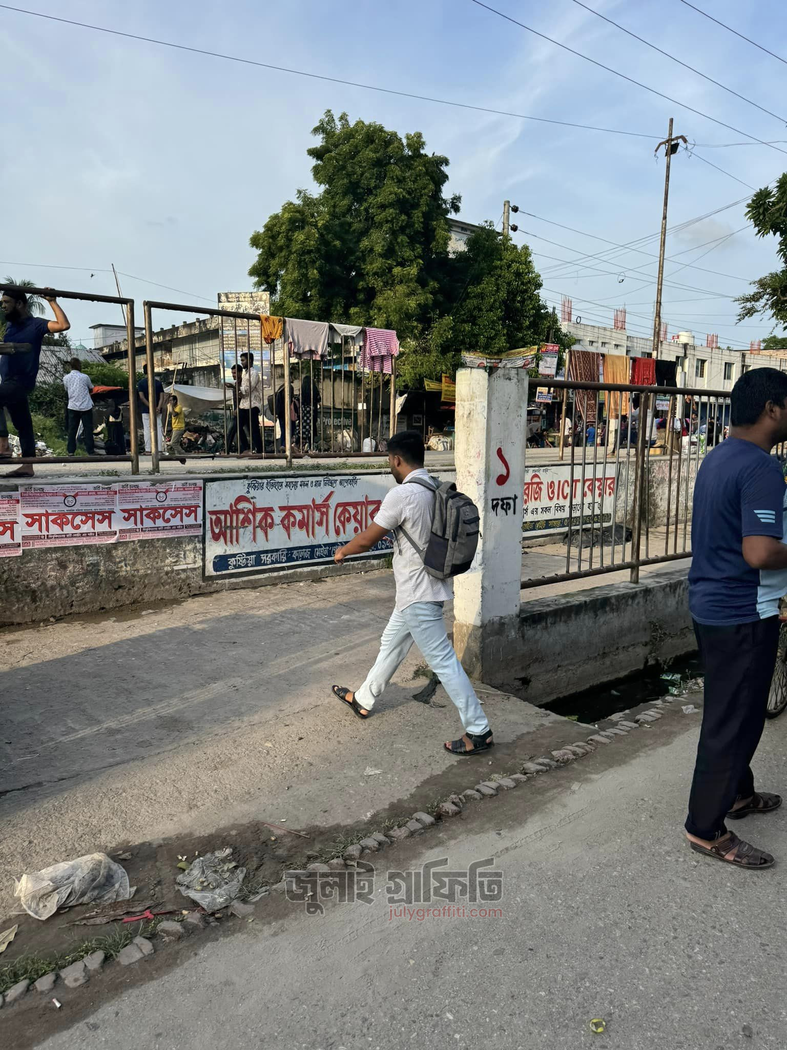 কুষ্টিয়া এনএস রোডে বিআরবি অফিসের সামনে ও ফায়ার স্টেশনের সামনের দেয়াল। ৩ সেপ্টেম্বর, ছবি: ইয়াসির আরাফাত।