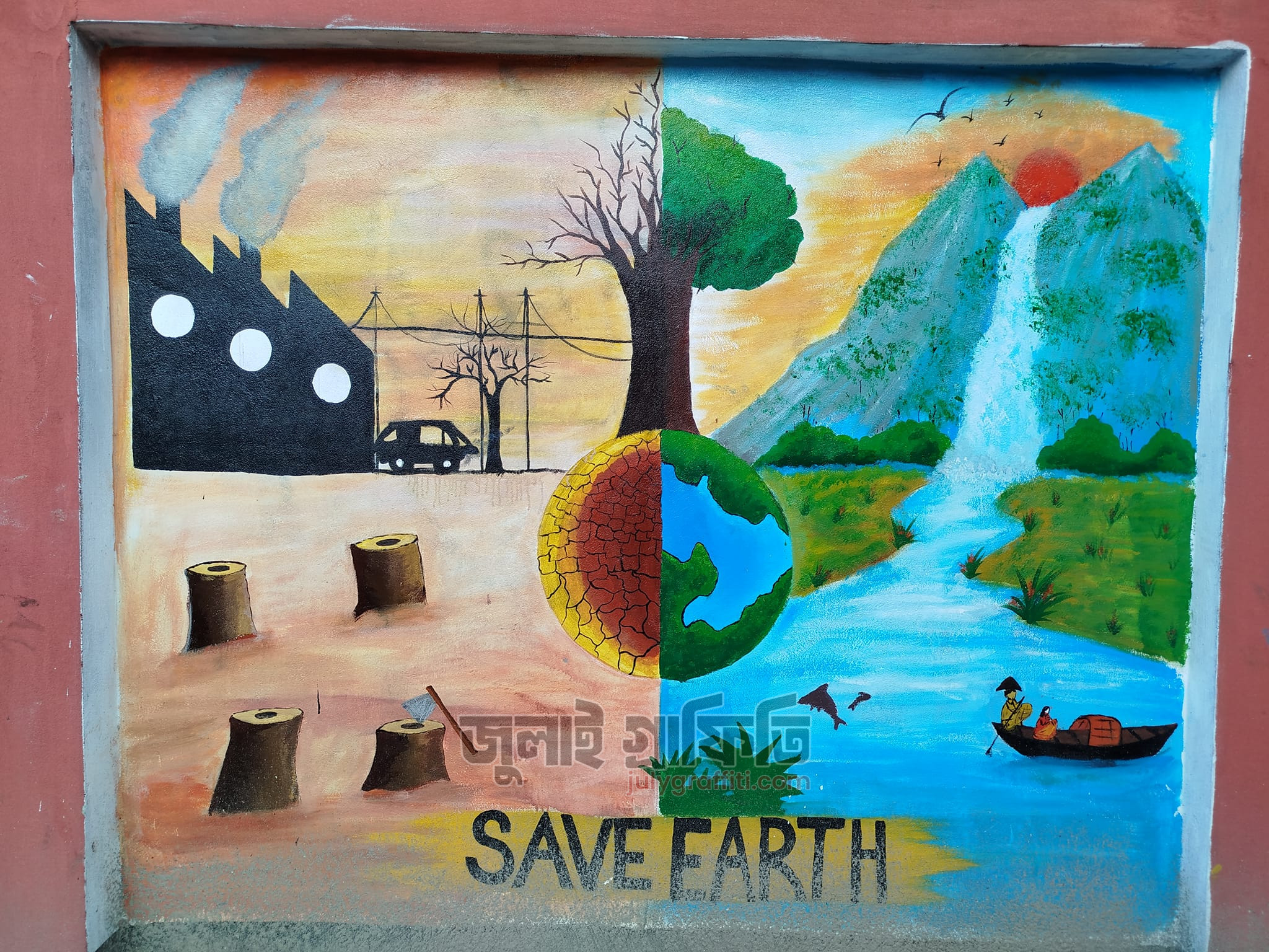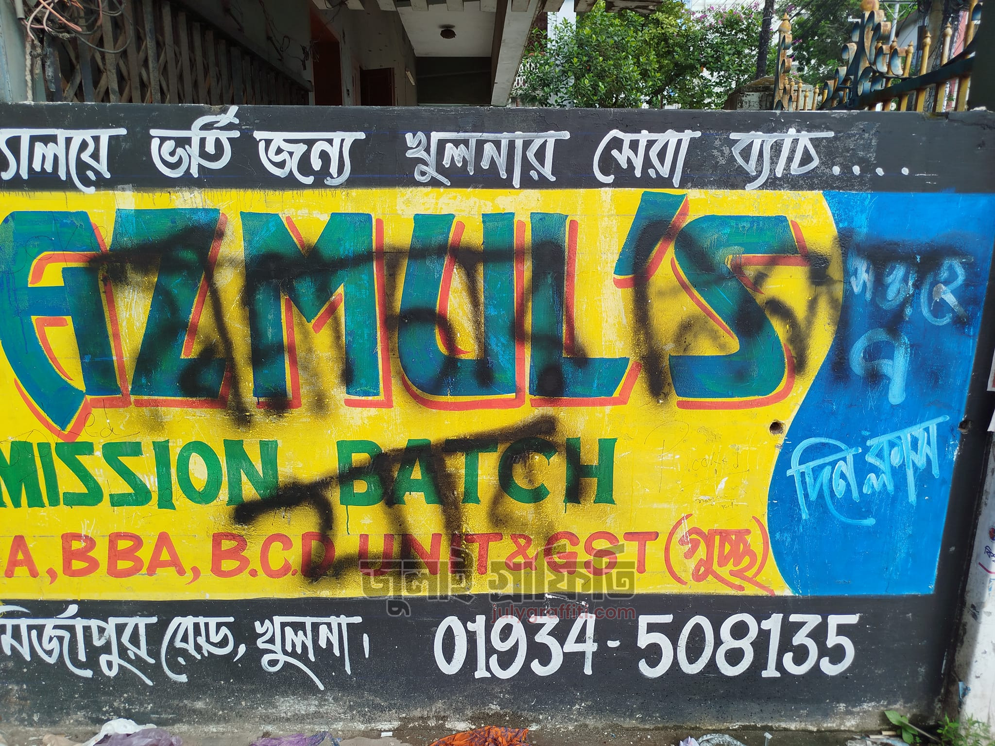 খুলনা কমার্স কলেজ ও সাউথ সেন্ট্রাল রোডের দেয়াল ঘেষে গ্রাফিতি ০৯ সেপ্টেম্বর,২০২৪ ছবি: সিলমী সাদিয়া