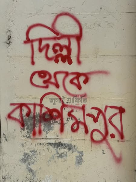 দিল্লী থেকে কাশিমপুর। ঢাকায় জাতীয় প্রেসক্লাবের বিপরীতে শিল্লকলামুখী রোডের মুখে ডানপাশের দেয়ালে লেখা। ছবি: ইয়াসির আরাফাত