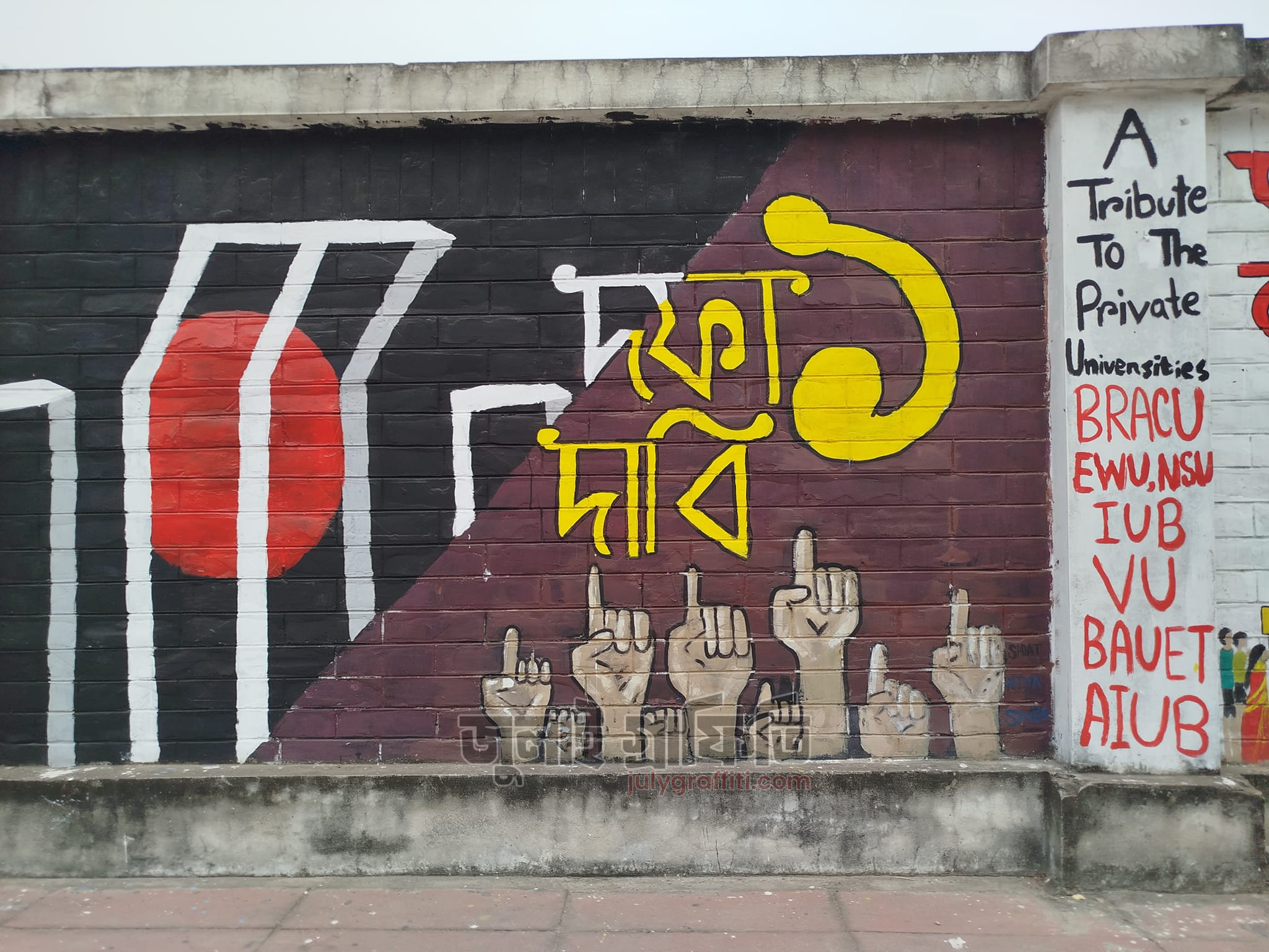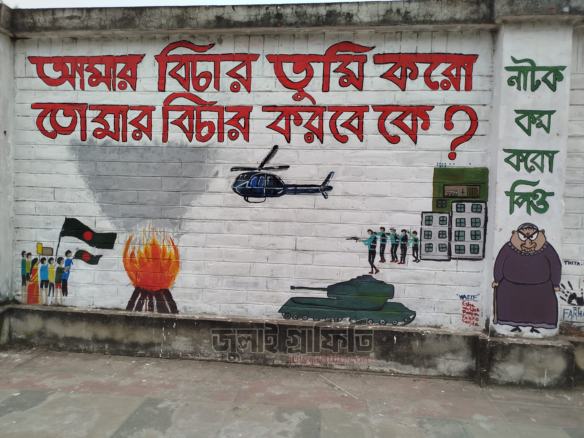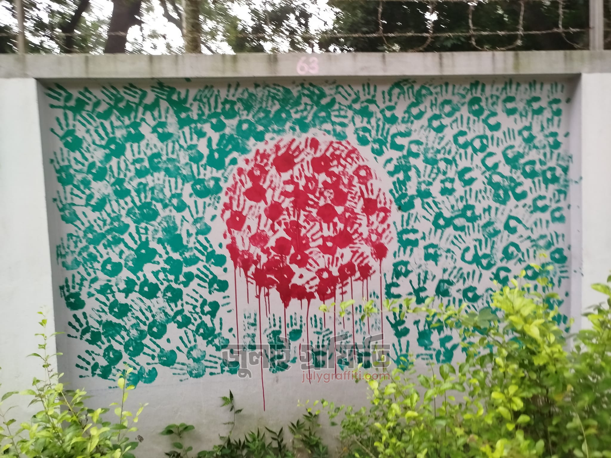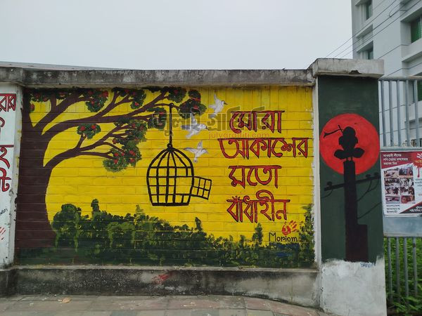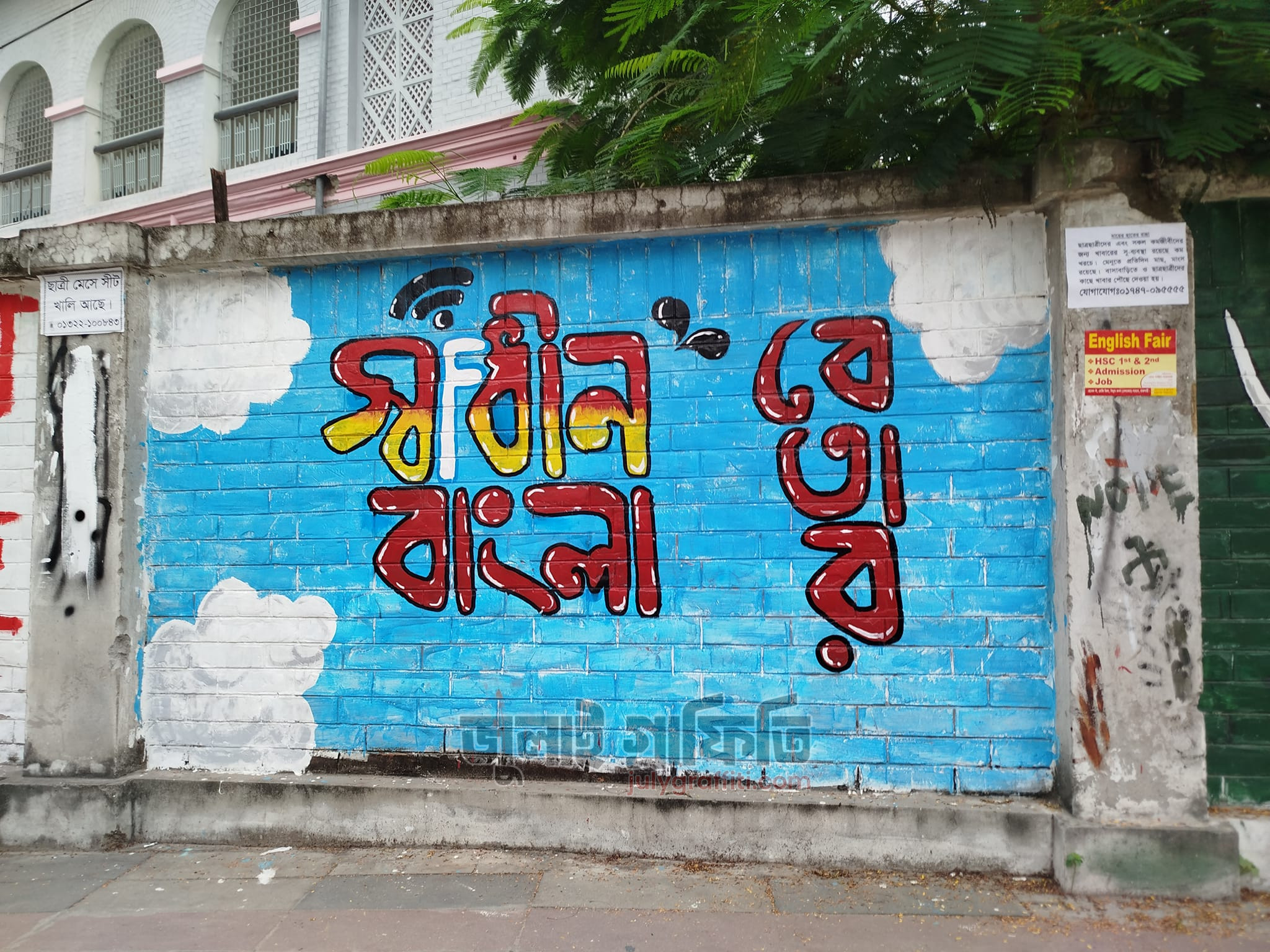 বরেন্দ্র জাদুঘর উল্টো দিকের দেয়াল ঘেঁষে গ্রাফিতি ২ রা নভেম্বর, ২০২৪ ছবি: সিলমী সাদিয়া