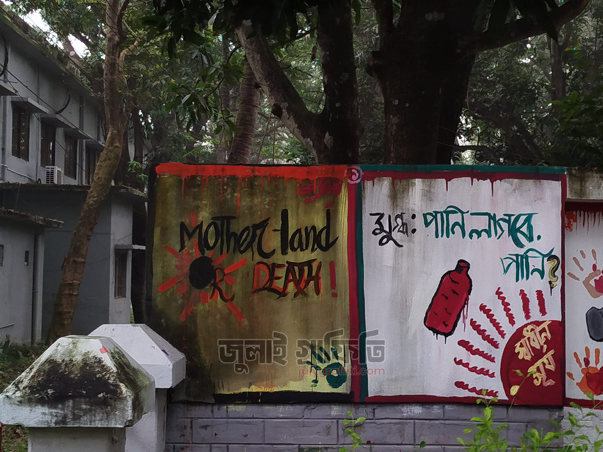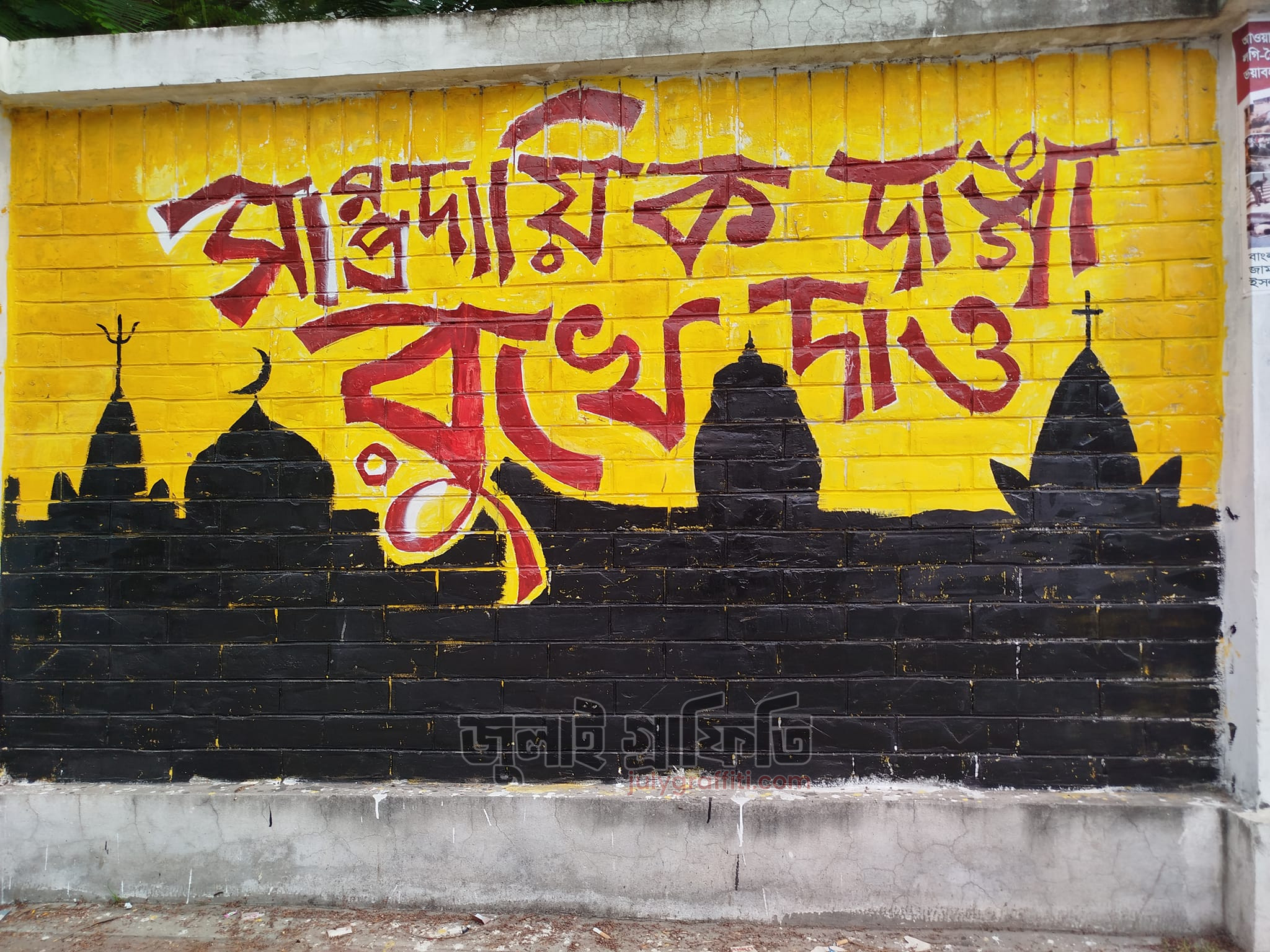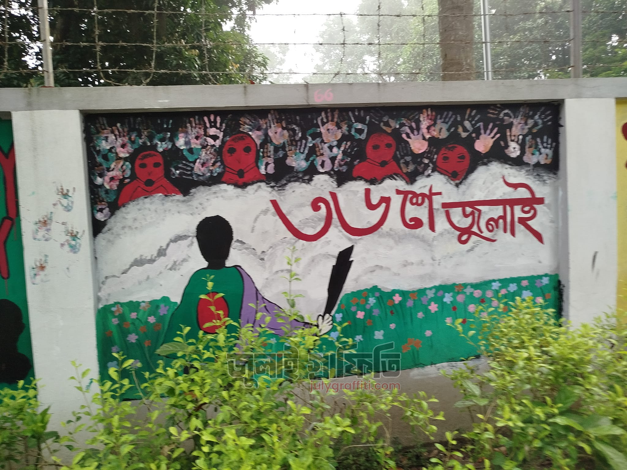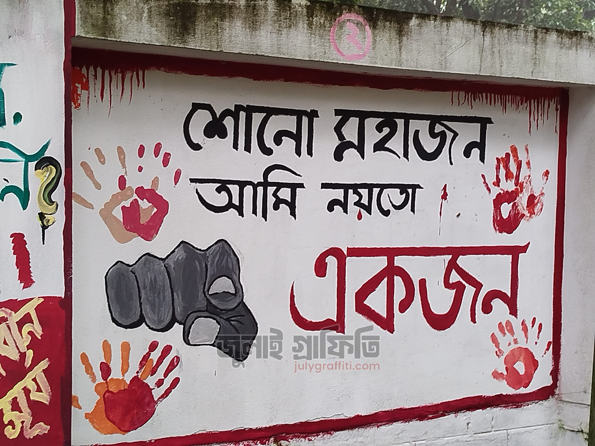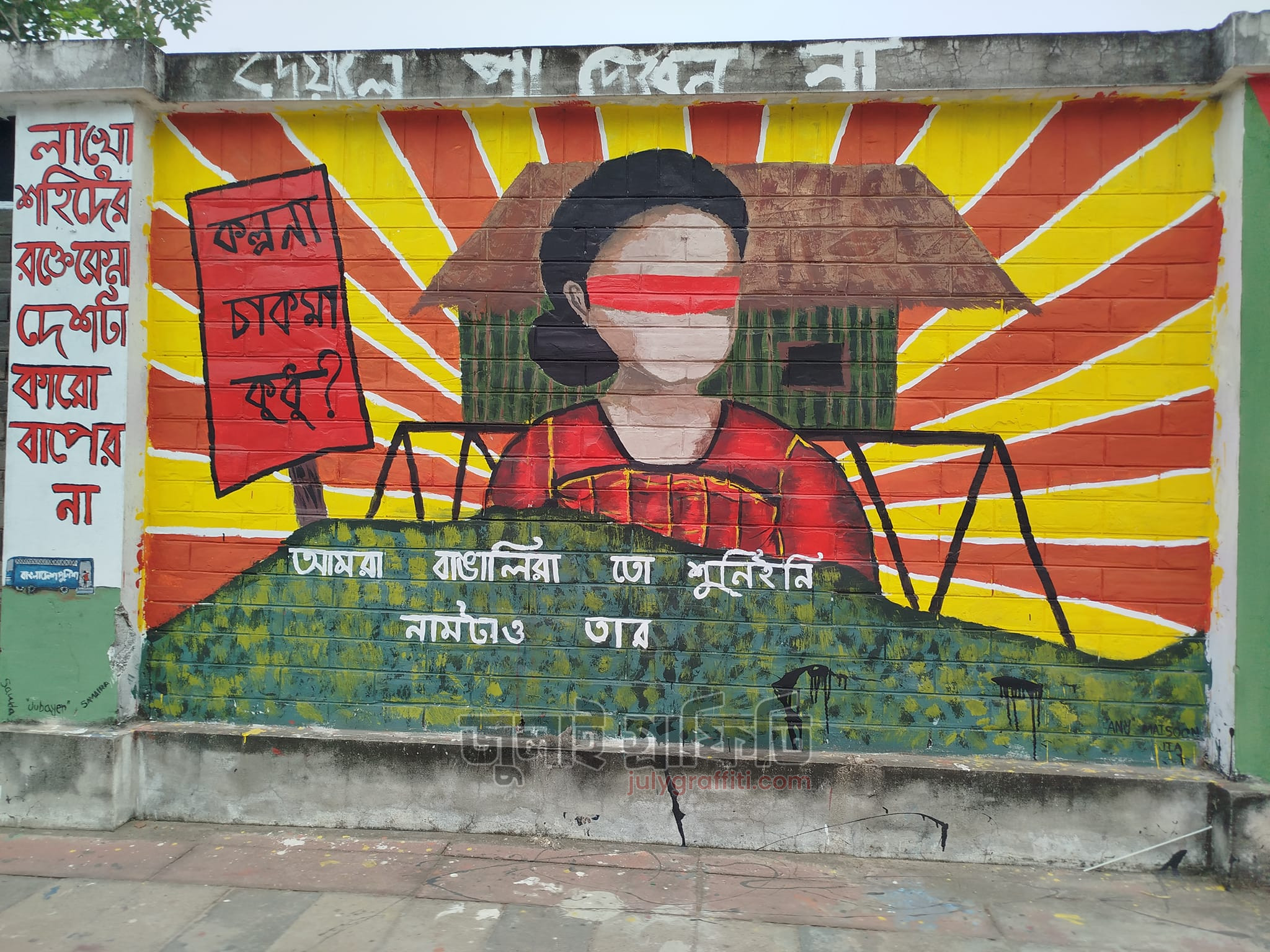 বরেন্দ্র জাদুঘর উল্টো দিকের দেয়াল ঘেঁষে গ্রাফিতি ২ রা নভেম্বর, ২০২৪ ছবি: সিলমী সাদিয়া