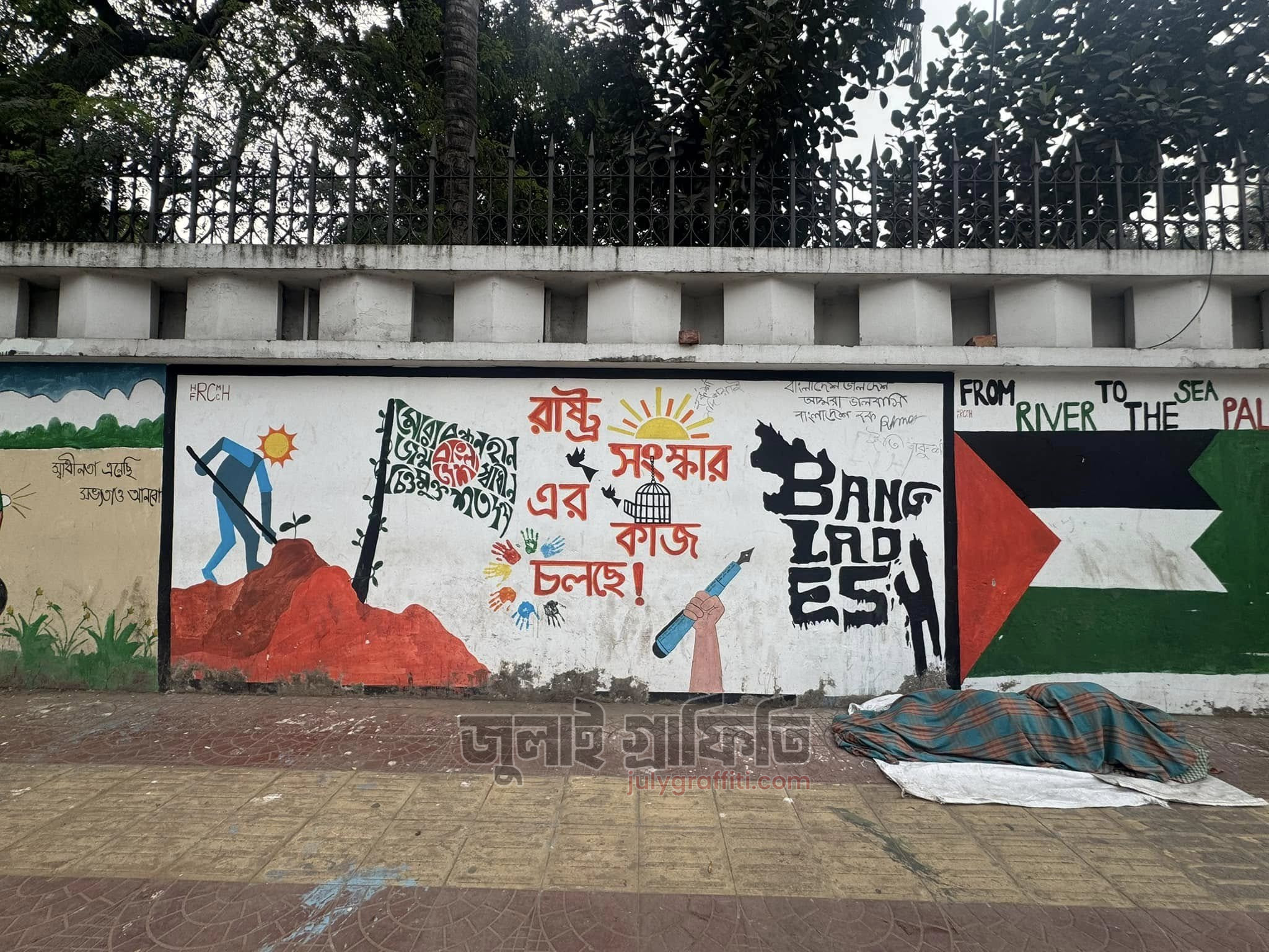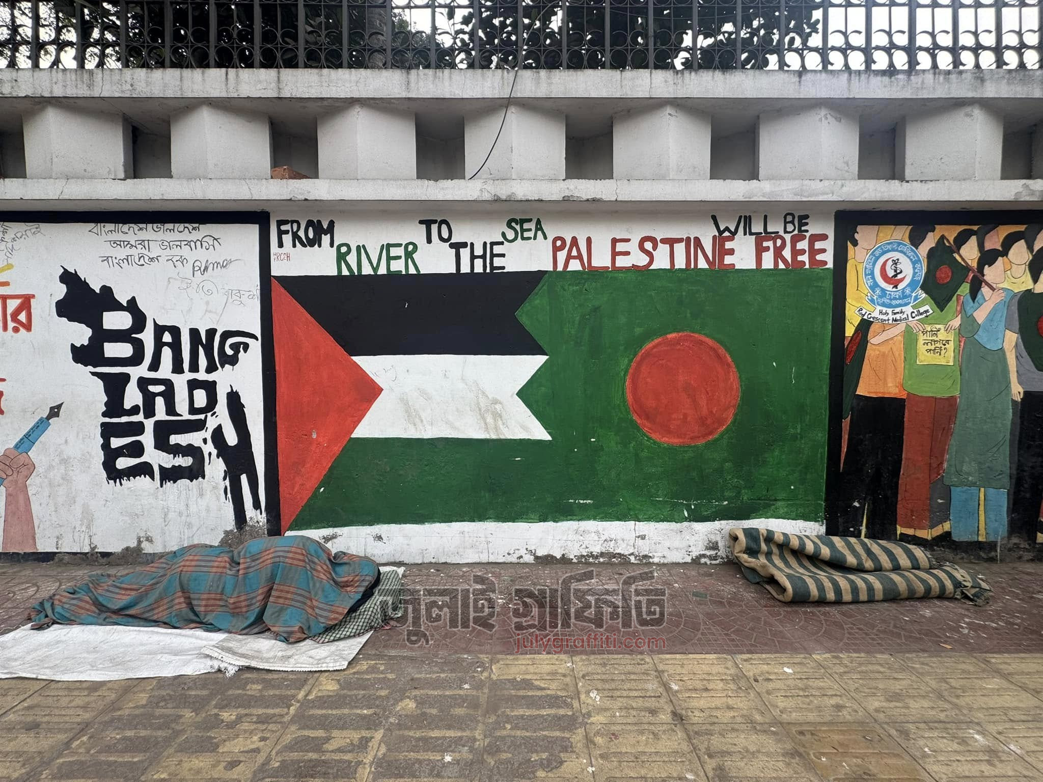 রাষ্ট্রীয় অতিথি ভবন পদ্মা’র দেয়ালে, হলি ফ্যামিলি মেডিকেল কলেজ হসপিটালের সামনে। মগবাজার, ঢাকা। তারিখ: ২ ফেব্রুয়ারি, ২০২৫ ছবি: ইয়াসির আরাফাত
