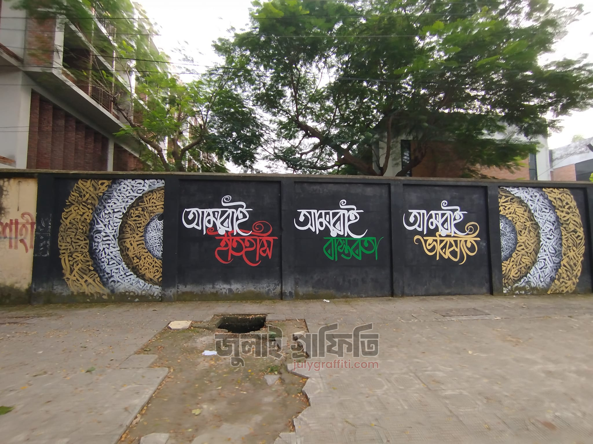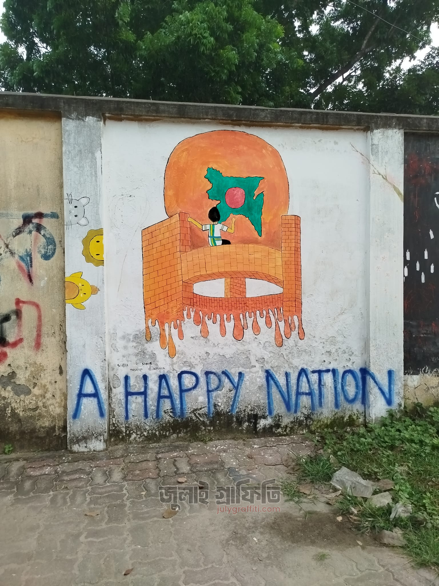 রুয়েটের দেয়াল ঘেঁষে গ্রাফিতি ২রা নভেম্বর, ২০২৪ ছবি: সিলমী সাদিয়া