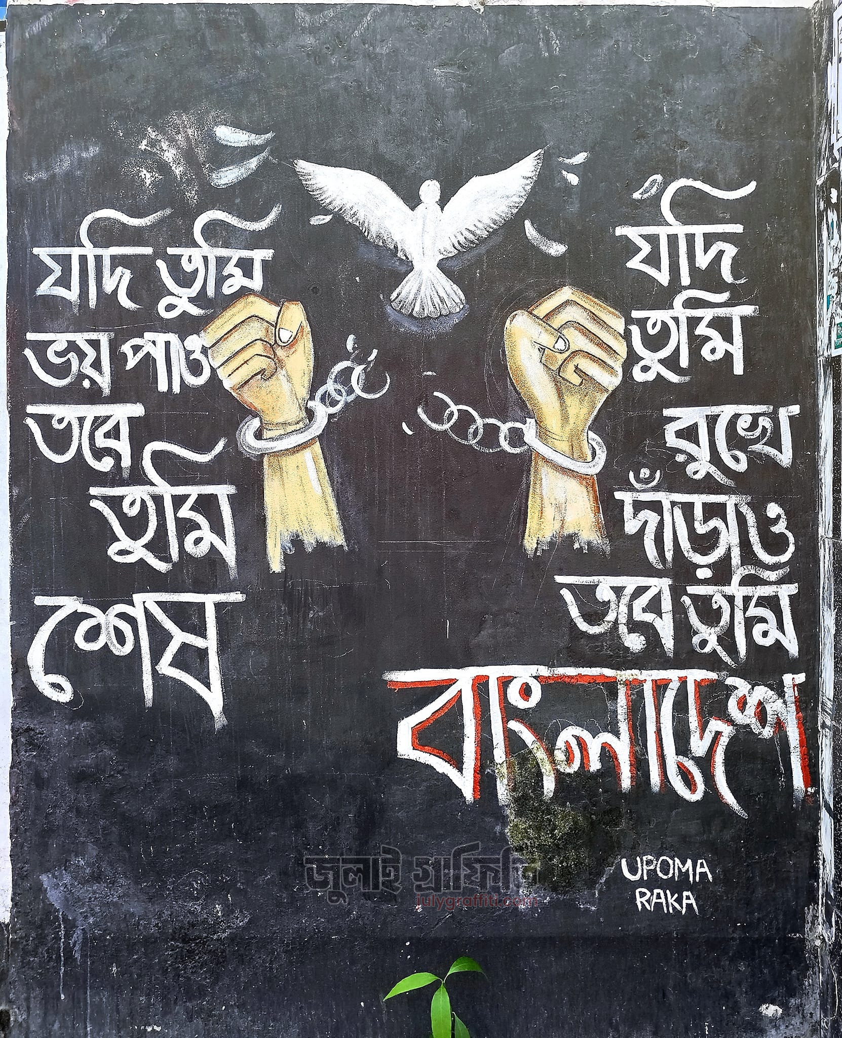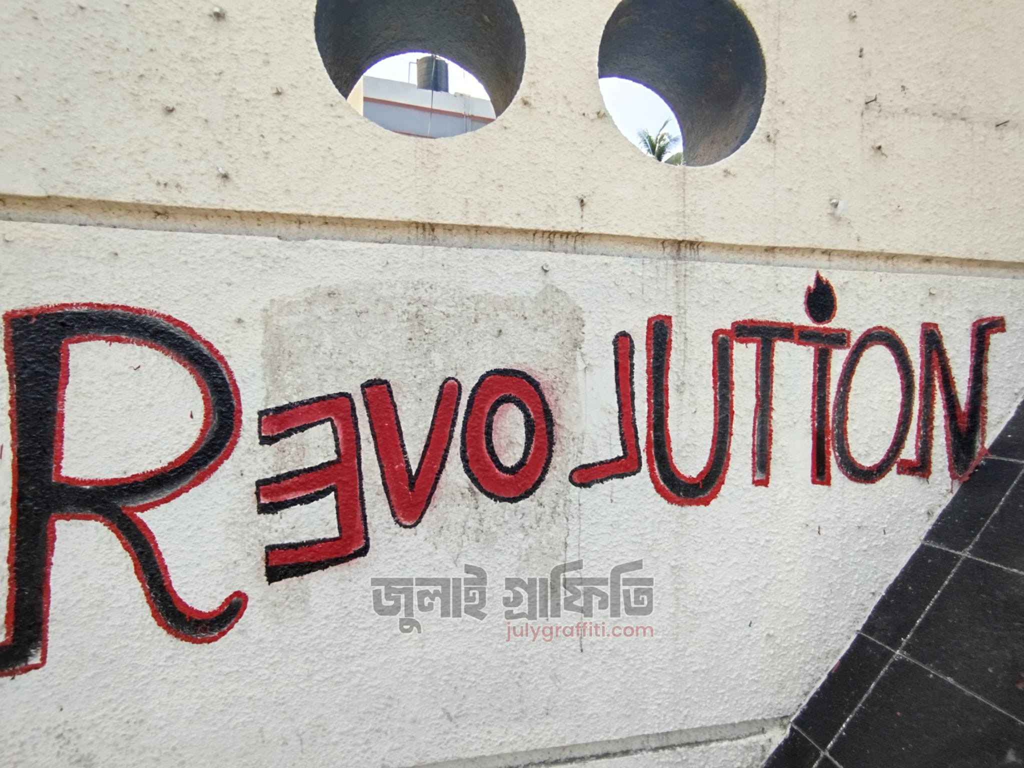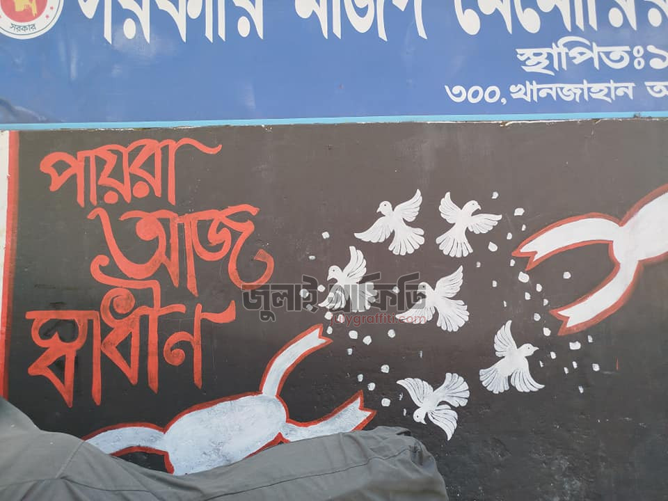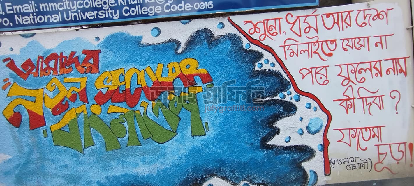 সরকারি মজিদ মেমোরিয়াল সিটি কলেজের দেয়াল ঘেষে গ্রাফিতি, খুলনা ০৯ সেপ্টেম্বর, ২০২৪ ছবি: সিলমী সাদিয়া